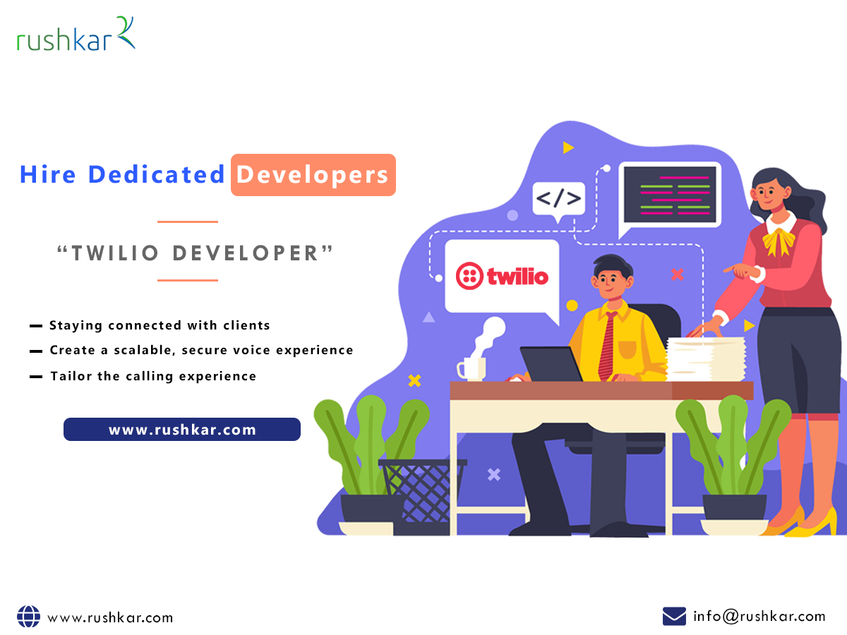 Rushkar is a renowned software development company with expertise in harnessing the power of Twilio’s platform. Businesses hire Twilio developers to transform their business’s communication infrastructure.